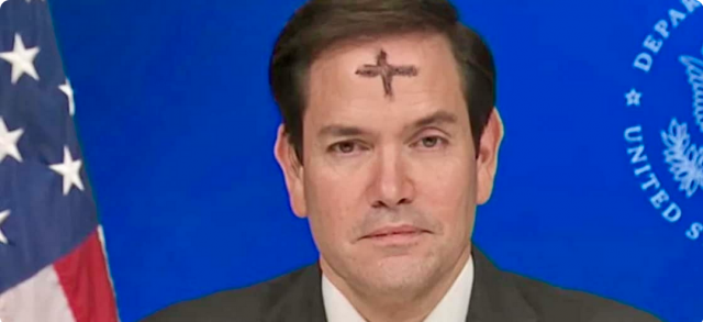 Marea ne-a fost uimirea, zilele trecute, când am aflat că șeful diplomației americane, Marco Rubio, ăla de apăruse într-un interviu televizat cu semnul crucii desenat pe frunte cu cenușă, în semn de fidelitate religioasă, că își asumă și rolul de Inchizitor MAGA, după ce se prosternase deja ca Apostol al Profetului cu talent la furt, preacurvie și înșelătorie!