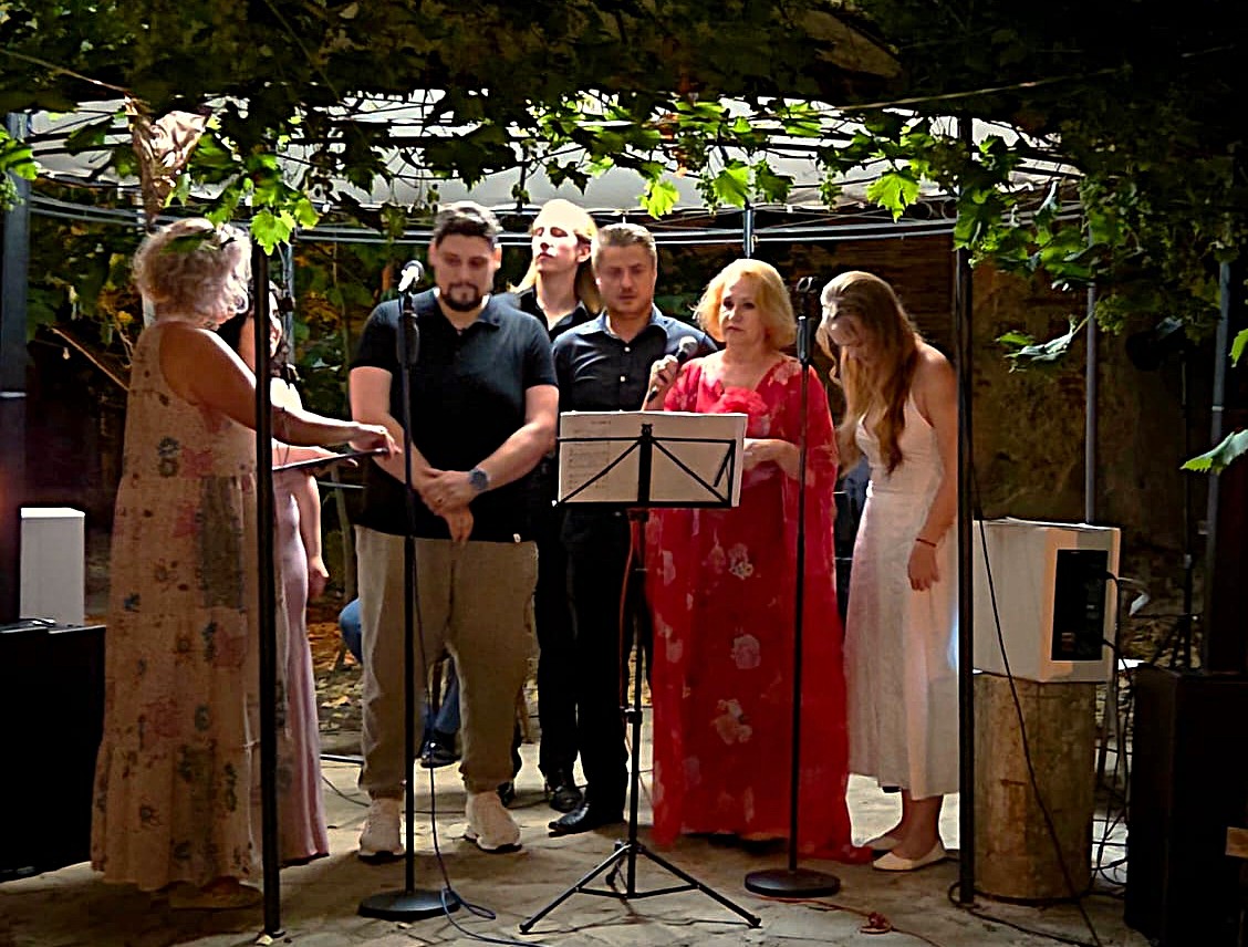 Recitalul nocturn s-a încheiat “en-fanfare”: Alin, tenorul cel mai fin, a interpretat „O sole mio”, sub clar de lună. Apoi, pentru ultima piesă, toți invitații și-au unit vocile minunate: “Sul mare luccica l’astro d’argento, placida é l’onda, prospero il vento / Venite all’argine barchette mie, Santa Lucia, Santa Lucia!” (“Pe mare strălucește astrul de argint, calm e valul, favorabil e vântul / Veniți în ambarcațiunea mea agilă, Sfânta Lucia-Sfânta Lucia!”).