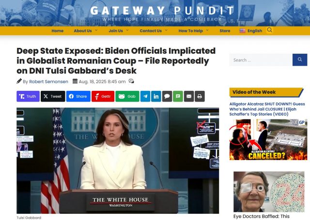 Săptămâna trecută, în peisajul social-media și apoi pe siteuri dedicate confuziei publice apare știrea, preluată de mai toată presa dâmbovițeană, precum că Departamentu de Stat (Ministerul de Externe) al SUA critică România pentru anularea primului tur al alegerilor prezidențiale în 2024. Informația de bază este dată publicității, pentru a fi preluată în România, de obscurul site de scandal de extremă-dreapta The Gateway Pundit, o „România Mare” a anilor ‘90, americană, trecută printr-un faliment în urma proceselor de defăimare pierdute dar reanimată de Donald Trump, după câștigarea noului mandat la Casa Albă.