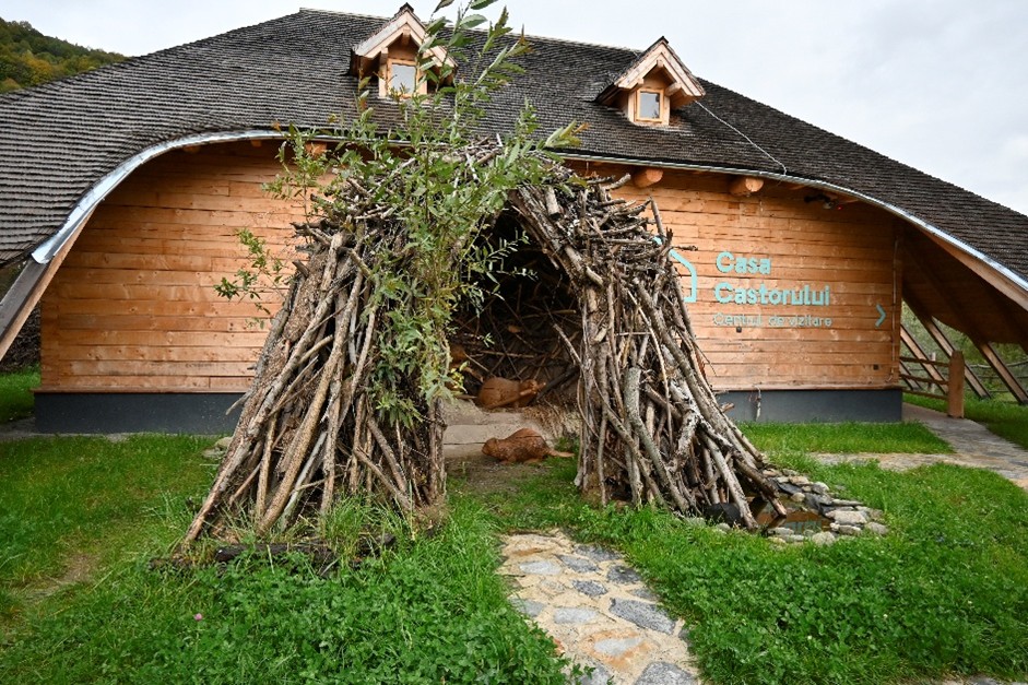 Nu departe, la Rucăr, într-o zonă unde munții sunt la ei acasă, lângă șosea principală, se află Casa Castorului. Arhitectura este una complexă și oferă vizitatorului, încă din primele momente, o perspectivă asupra culturii locului, dar și o idee despre spațiul de locuit al castorului. Astfel, vizita începe cu un popas într-un adăpost de castor, o construcție care imită „casa” pe care acesta o construiește în natură. Acoperișul este din șiță tradițională, la realizarea construcției s-au folosit materiale naturale, produse local, procesul de construire a sprijinit economia locală și a avut un impact minim asupra naturii. Centrul este dotat cu panouri fotovoltaice, pe lângă sala expozițională există și un magazin destinat produselor locale reunite sub brandul FCC ”Roadele Munților”. (foto 9)