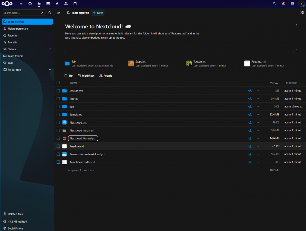 Dacă te descurci să instalezi un WordPress sau să urmezi un tutorial de 10 pași, te descurci și cu Nextcloud. Iar după instalare, gestionarea utilizatorilor, spațiilor de stocare și aplicațiilor se face aproape exclusiv din interfața web.