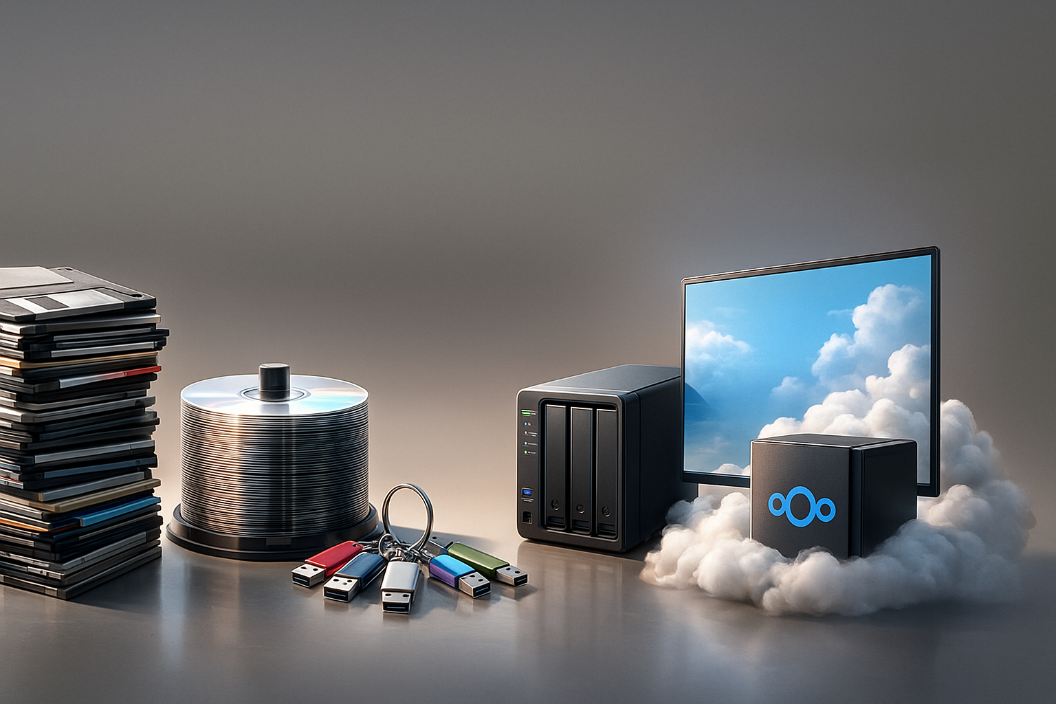 În rândurile de mai jos trec printr-un scurt istoric al stocării fișierelor – de la dischetă la cloud – și apoi mă opresc la o opțiune care îți dă înapoi controlul: cloud privat cu Nextcloud, instalat pe infrastructura ta, nu pe serverele altcuiva.