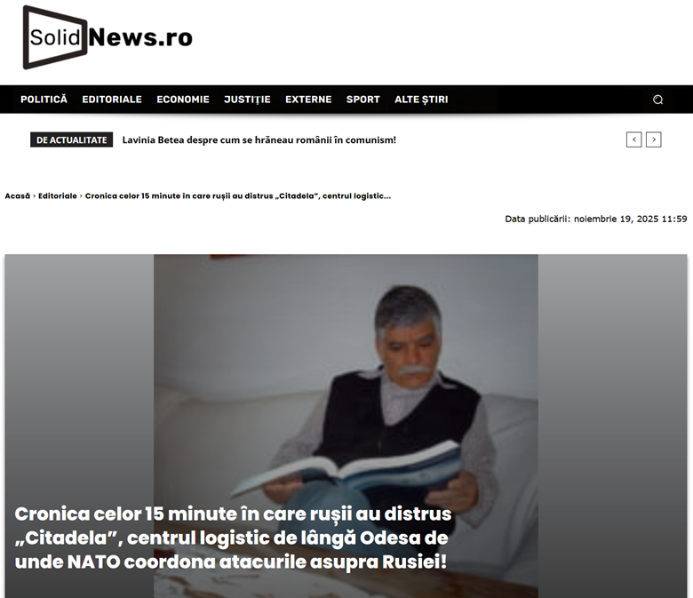 Operaţia „Citadela” prin care ruşii au dat o palmă occidentului lângă Odesa, [îmi place că a scris Odesa cu un singur s, în versiunea ucraineană a numelui orașului. Asta îmi spune că autorul nu are instruirea formală a unui agent de influență rus. E, cum s-ar spune, un tiriplici care se bagă în seamă] NATO a construit un centru logistic, de unde conducea operaţiile ucrainiene şi tirul de rachete asupra teritoriului rusesc, ceea ce nu putea fi tolerat multă vreme de comandamentul rusesc.