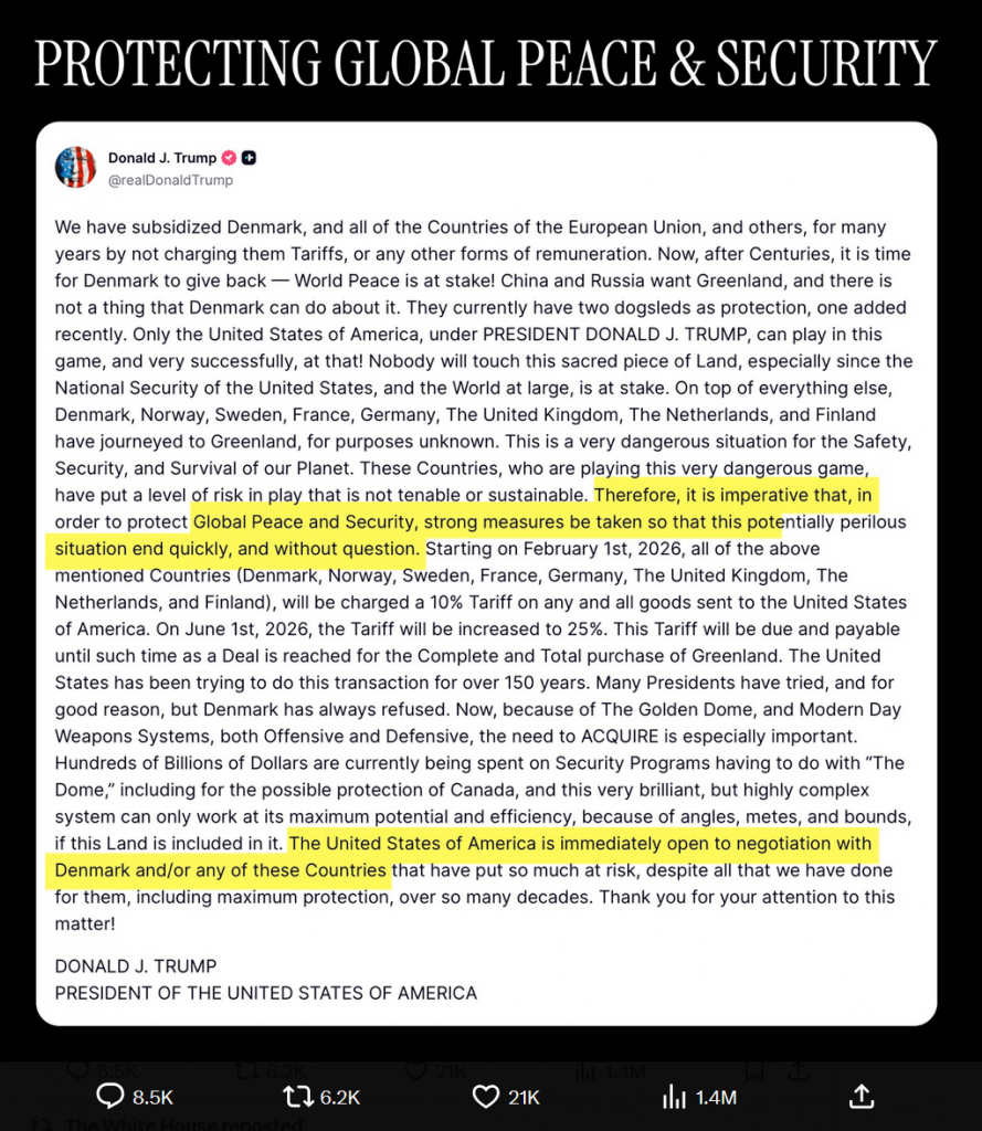 Invitat de prim rang în Consiliul Mondial al Păcii lui Trump, cum altfel, este președintele perpetuu al Federației Ruse, Vladimir Putin, criminal de război și răpitor de copii, împreună cu vecinul său, dictatorul din Belarus, Aleksandr Lukașenko. În context, odată cu transmiterea invitațiilor pentru constituirea consiliului, bulangiul președinte american n-a pregetat să-i dea cu tifla într-un mesaj public prim-ministrului norvegian, Jonas Gahr Støre, pentru faptul că nu i-a fost acordat premiul Nobel pentru Pace. Dealfel, Trump a anunțat cu această ocazie că a socotit drept afront personal nenominalizarea sa la înalta distincție astfel că de acum se consideră îndreptățit să alipească Groenlanda la SUA, pe orice cale posibilă. “După ce Norvegia a decis să nu-mi acorde Premiul Nobel pentru Pace nu mă mai simt obligat să mă gândească doar la pace și acum mă pot concentra pe ceea ce este bun și potrivit pentru Statele Unite. Lumea nu este sigură dacă nu avem control complet și total asupra Groenlandei. Trump a reiterat amenințările cu impunerea unor tarife vamale de 10% Norvegiei și altor țări europene pentru trimiterea de trupe în Groenlanda insistând, de asemenea, că suveranitatea Danemarcei asupra Groenlandei este discutabilă.