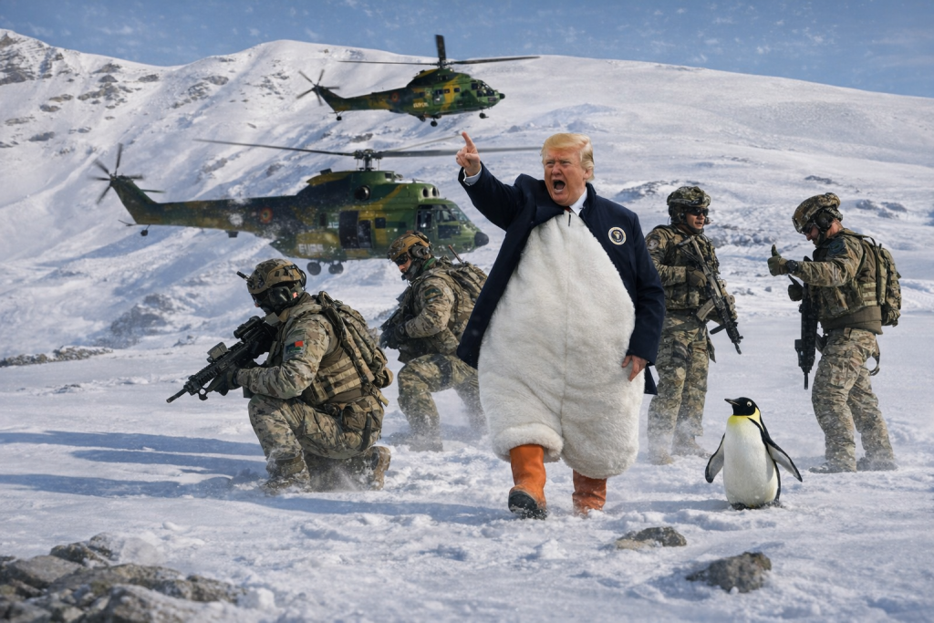 Eu am râs cu lacrimi, ce-i drept, la această înscenare infantilă reprodusă din seria “Counter strike”, care însă i-a emoționat până la moțiune pe parlamentarii suveraniști români care or fi luat în serios pericolul amestecului în interesele lui Trump în stăpânirea Groenlandei. Chiar așa, ce-ar fi fost să desantăm înaintea americanilor pe Tărâmul Verde?