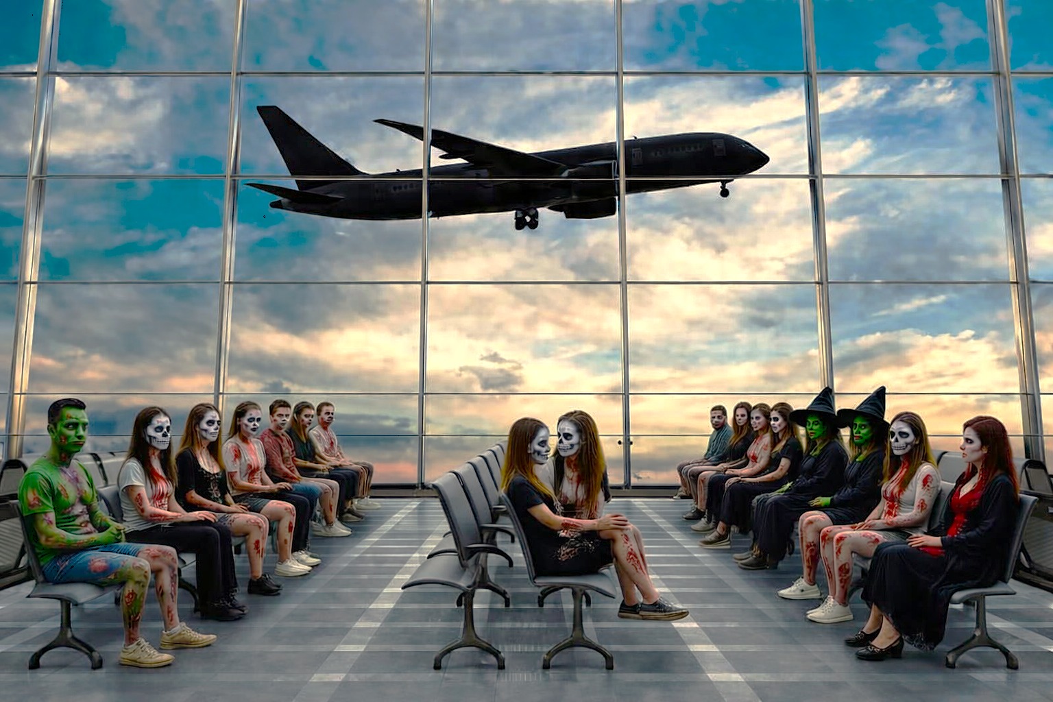 Pe panoul de informații, singurele zboruri gratulate cu calitatea de ”întârziat” erau al nostru și al altei surate de suferință tot din România, ceea ce i-a determinat pe cei cu minte înflăcărată să se gândească la tot felul de scenarii apocaliptice în țară, gen atacuri teroriste și alte alea.