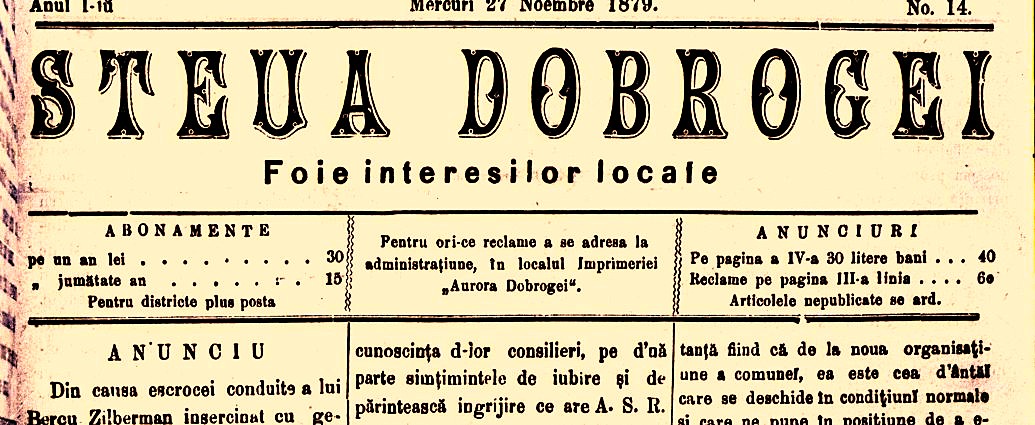 Foto: „Steua Dobrogei” 27 noiembrie 1879 - Biblioteca Județeană Constanța