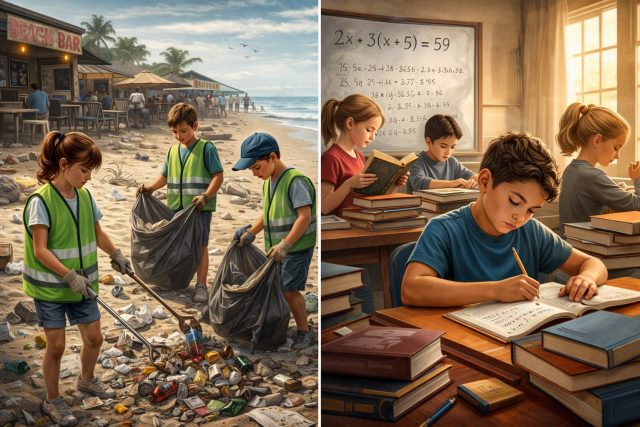 Dacă „Școala Altfel” ridică probleme de organizare, „Școala Verde” ridică și întrebări de etică. Activitățile propuse sunt, în esență, corecte: ecologizare, plantare, reciclare. Problema apare în modul în care sunt implementate. Imaginea elevilor plecați să strângă gunoaie din zone comerciale, adesea în proximitatea unor afaceri care ar trebui să gestioneze aceste responsabilități, ridică o întrebare legitimă despre limitele educației civice și transferul de responsabilitate.